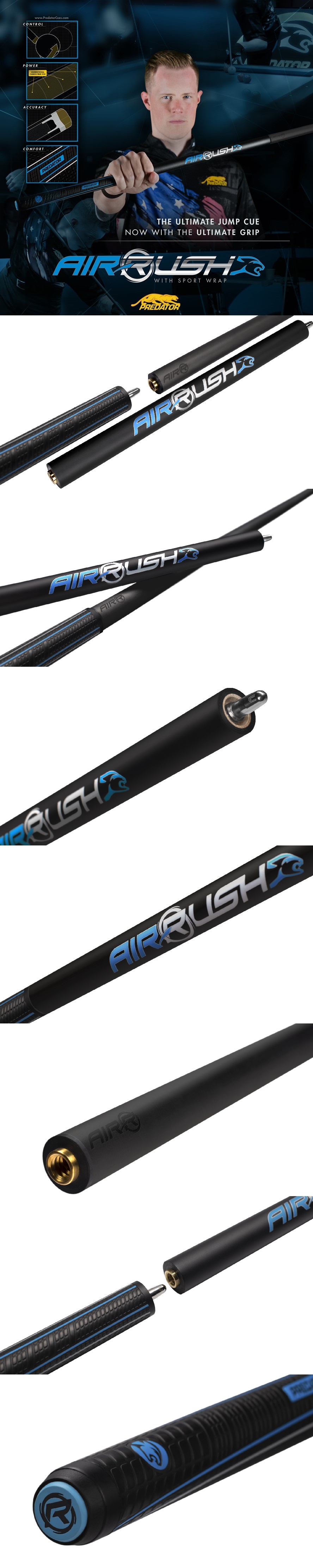 The Air Rush is now available with a Sport Wrap, for greater control in getting out of those tricky spots. Featuring innovative extended handles, it makes taking flight effortless and helps to achieve precision landings. By improving your execution and making your jumping more efficient, Air Rush helps you increase your success rate on those difficult, hard to get out of situations, and ultimately increases your versatility on the table. Paired with our Air REVO carbon fiber shaft, the Air Rush with Wrap is designed and developed for ultimate jumping power and accuracy; now with added comfort and style.